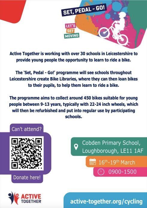 All children should learn to ride a bike but they don't always have access to one. This scheme lets you donate unwanted bikes that will be serviced and sent out to schools for children to then learn on. Thank you Mr Woolley for organising this.